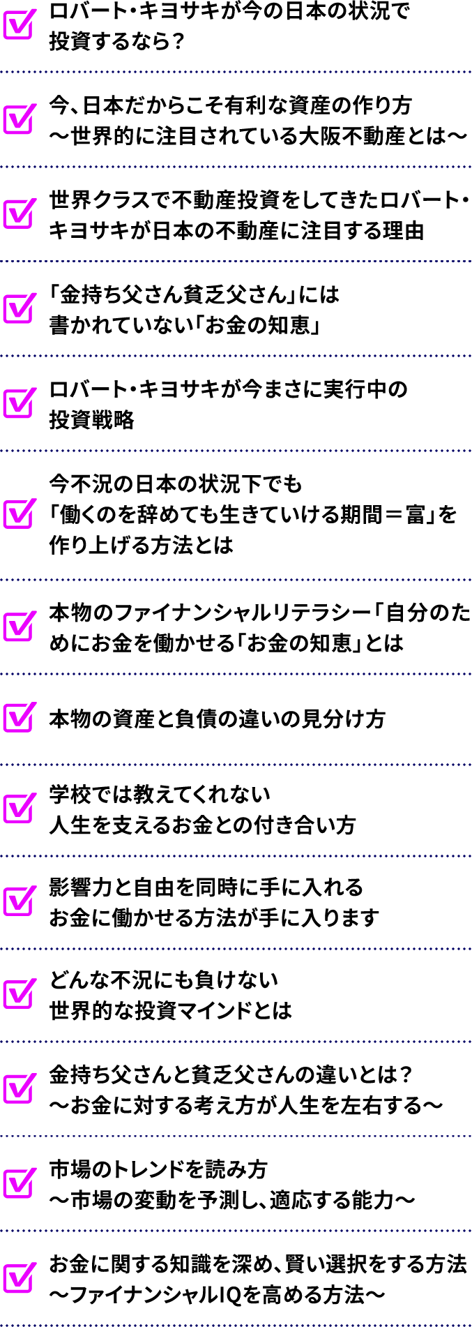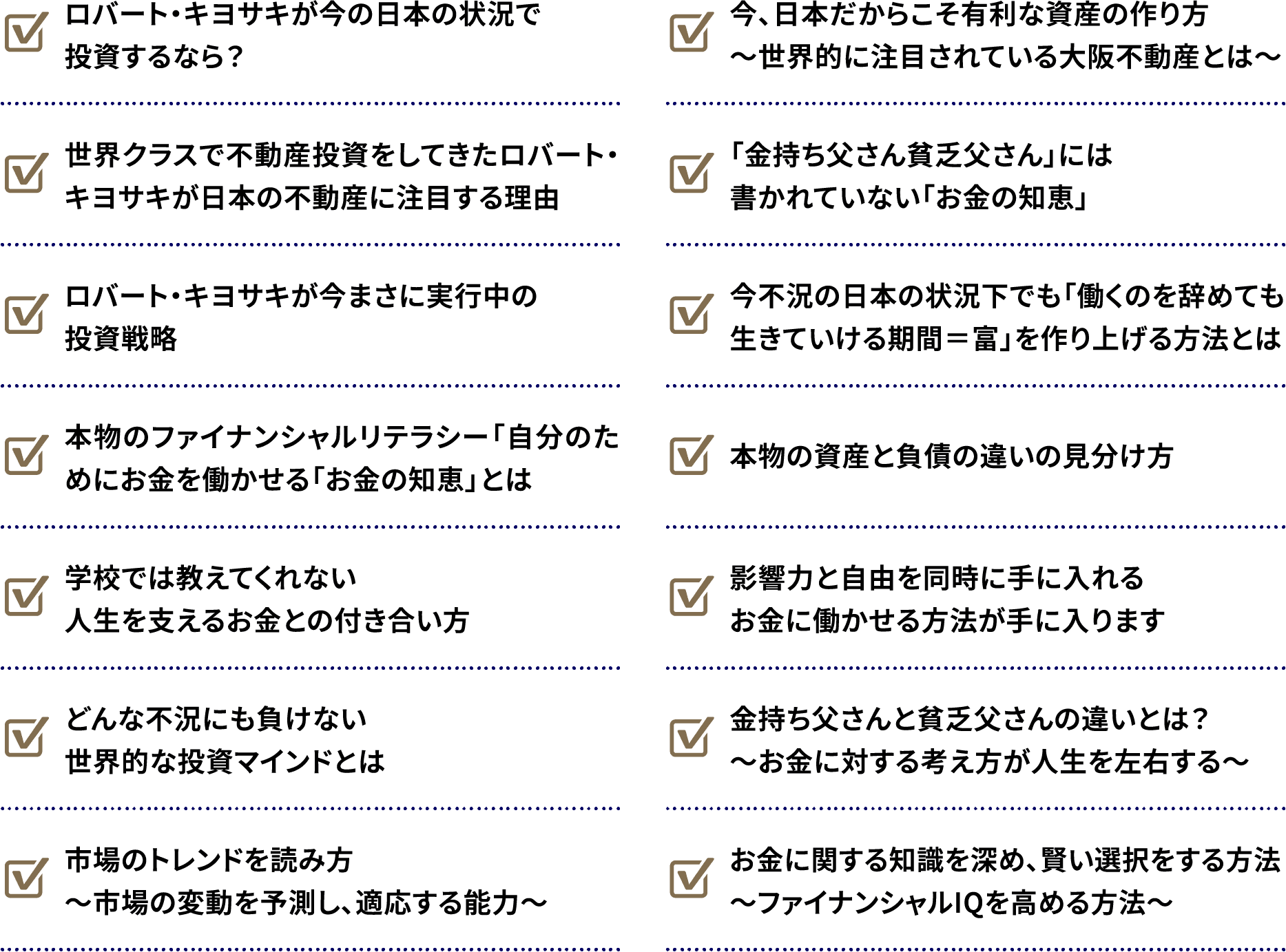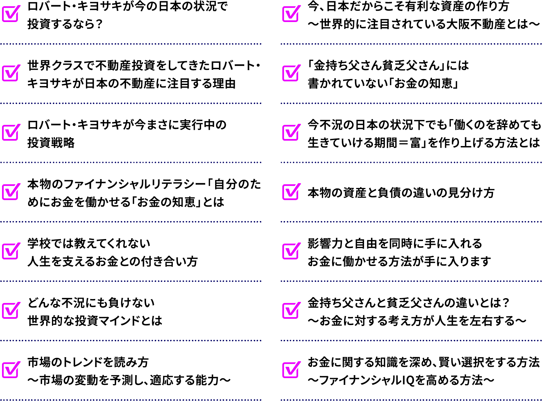 「金持ち父さん貧乏父さん」発売から27年が経ちますが、今回のイベントでは、書籍だけでは語りきれないお話や、よりエキサイティングな体験ができることでしょう。